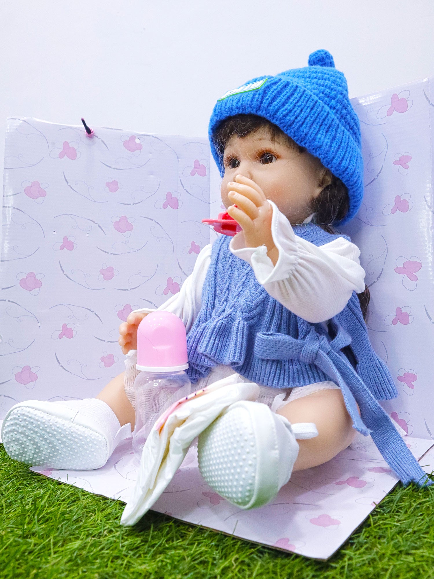 Certificado de nacimiento, panal, chupón, tetero, ropita y zapatitos.